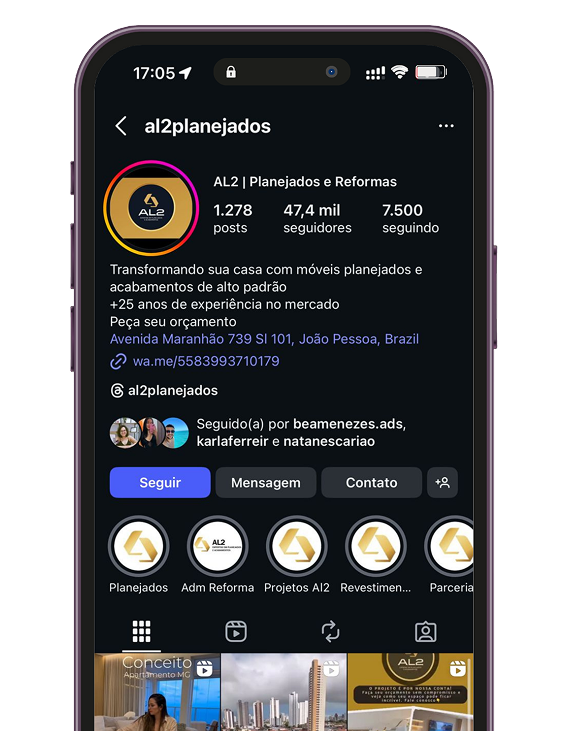 Na AL2, cada projeto é exclusivo, pensado para otimizar espaços com sofisticação, funcionalidade e alto padrão. Dos móveis planejados ao último detalhe do acabamento que você sonha, a gente executa com precisão.